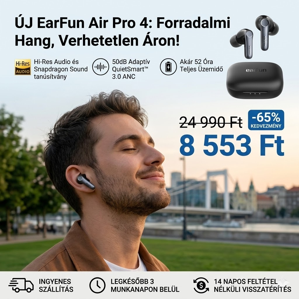 Az EarFun Air Pro 4 a legújabb Bluetooth 5.4 kapcsolatot használja, amely stabil és megbízható kapcsolatot biztosít. A több eszköz egyidejű csatlakoztatásának lehetősége révén zökkenőmentesen válthatsz az eszközök között.
